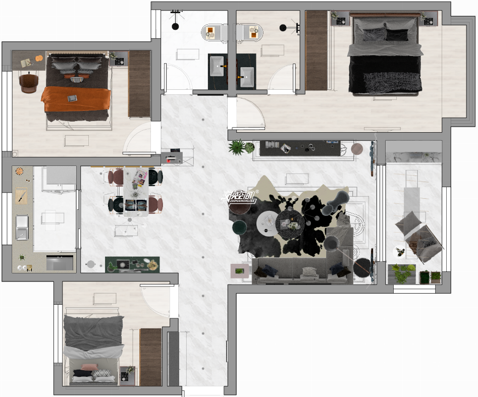 設(shè)計(jì)說明:家,承載著生活,也容納著真實(shí)的自我。在快節(jié)奏的社會(huì)環(huán)境下,生活的壓力總是讓人變得浮躁不安,我們迫切需要一方凈土來尋求內(nèi)心的安寧與放松。于是,溫馨詩意的家就成了不可多得的心靈港灣。